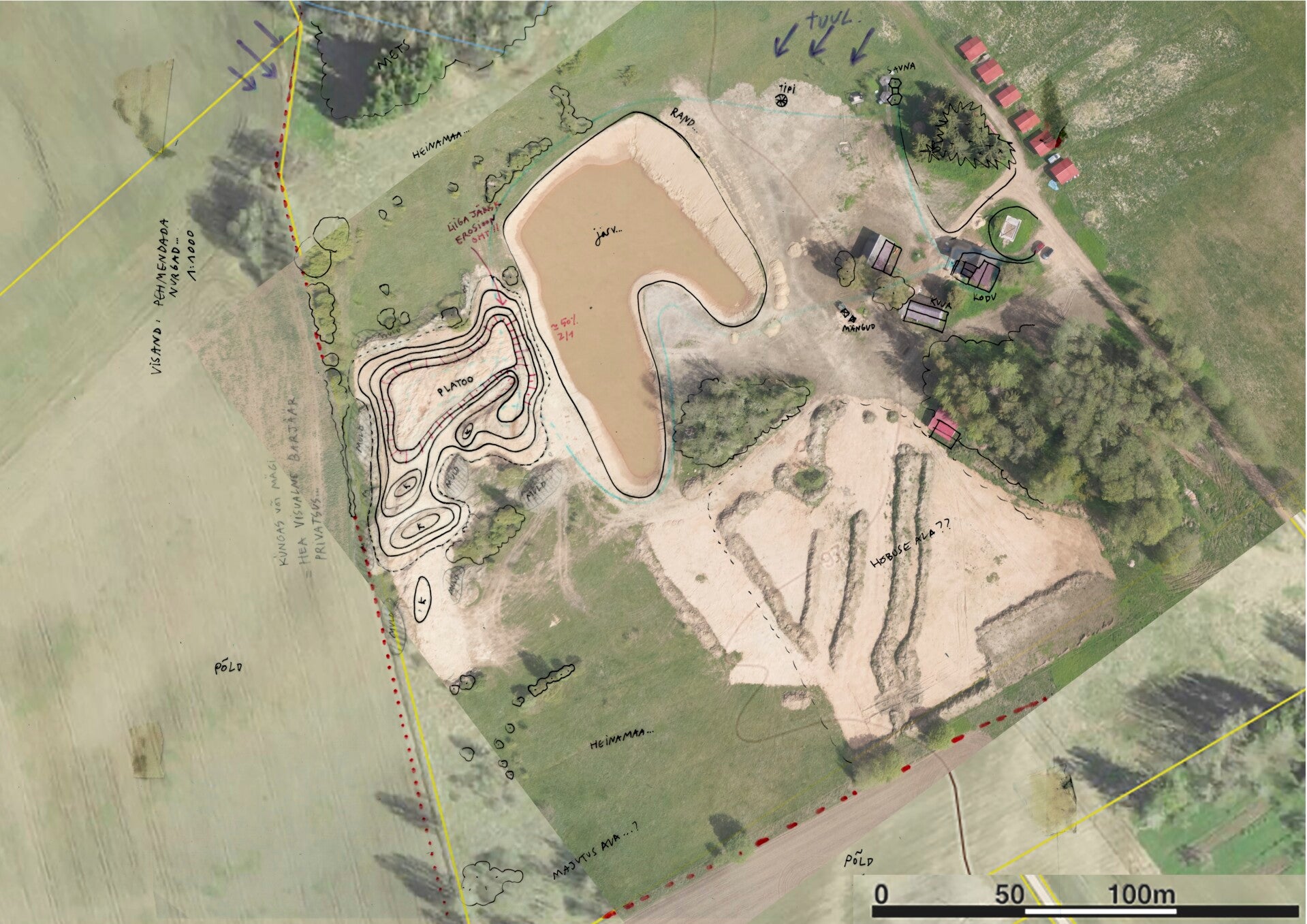 Maastiku kujundamise visioon Vana-Kaasiku talu ümbruse ja selle suure tiigi kohta.